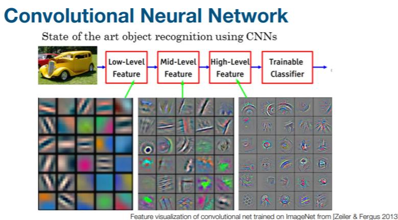 CNN이라는 게 결국 이미지 속에서 여러가지 특징들을 low level(여러가지 단순한 모양의 선)부터 high level(선이 모여진 어떤 형태의 모양)까지 찾아내서 이미지를 추론하는 딥러닝과정이다.