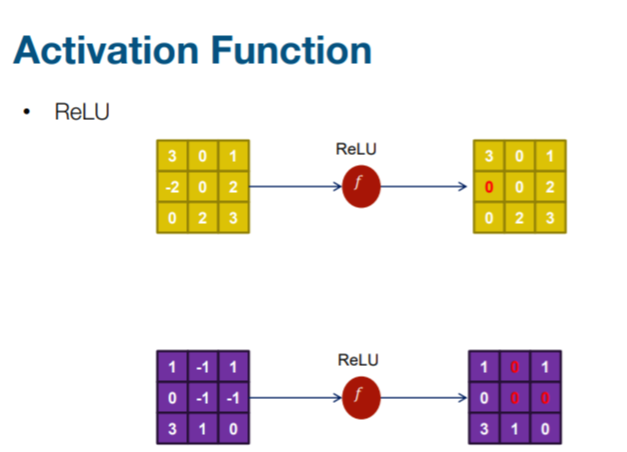 두번째, 그 계산 결과를 activation function을 이용해 nonlinearity 를 부여해주는 과정이 있다.