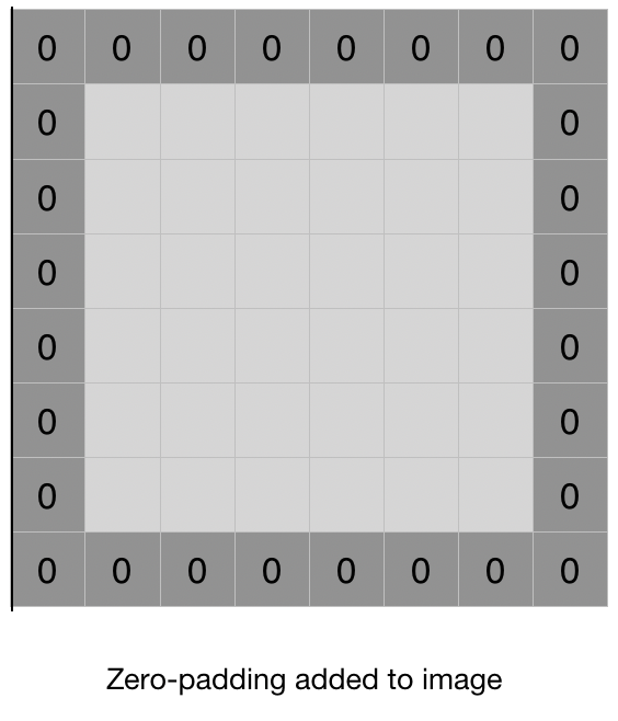 - zero padding이란 image 주위를 0으로 둘러주는 과정을 말한다.