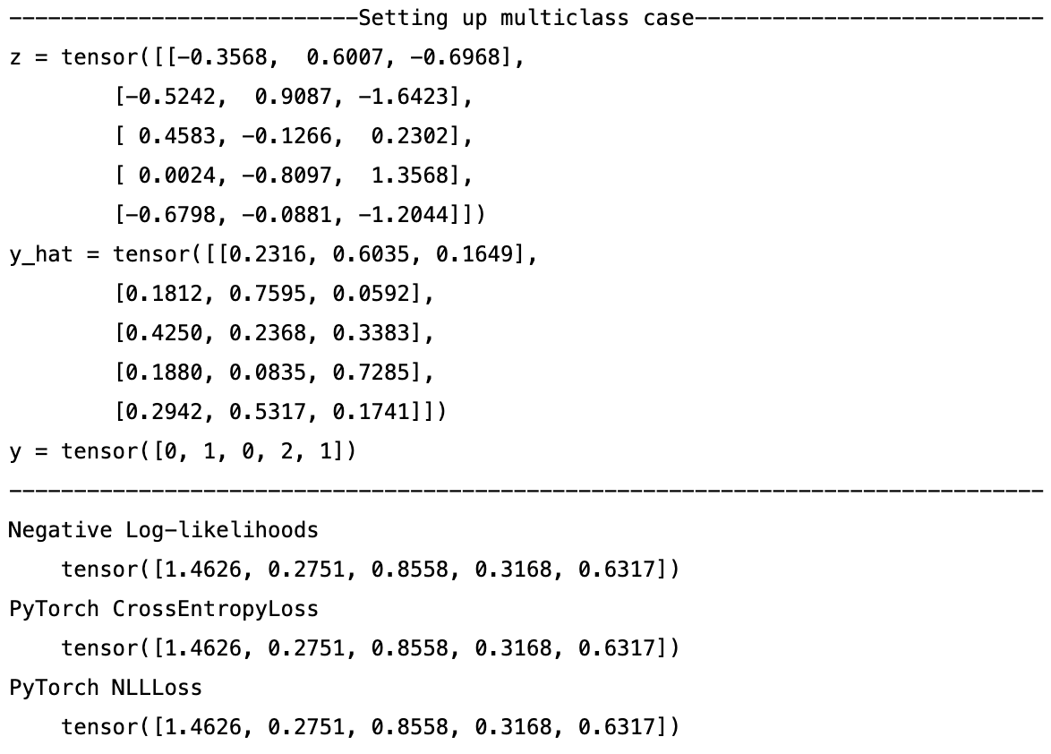 print(f"PyTorch NLLLoss\n {loss_NLL}")