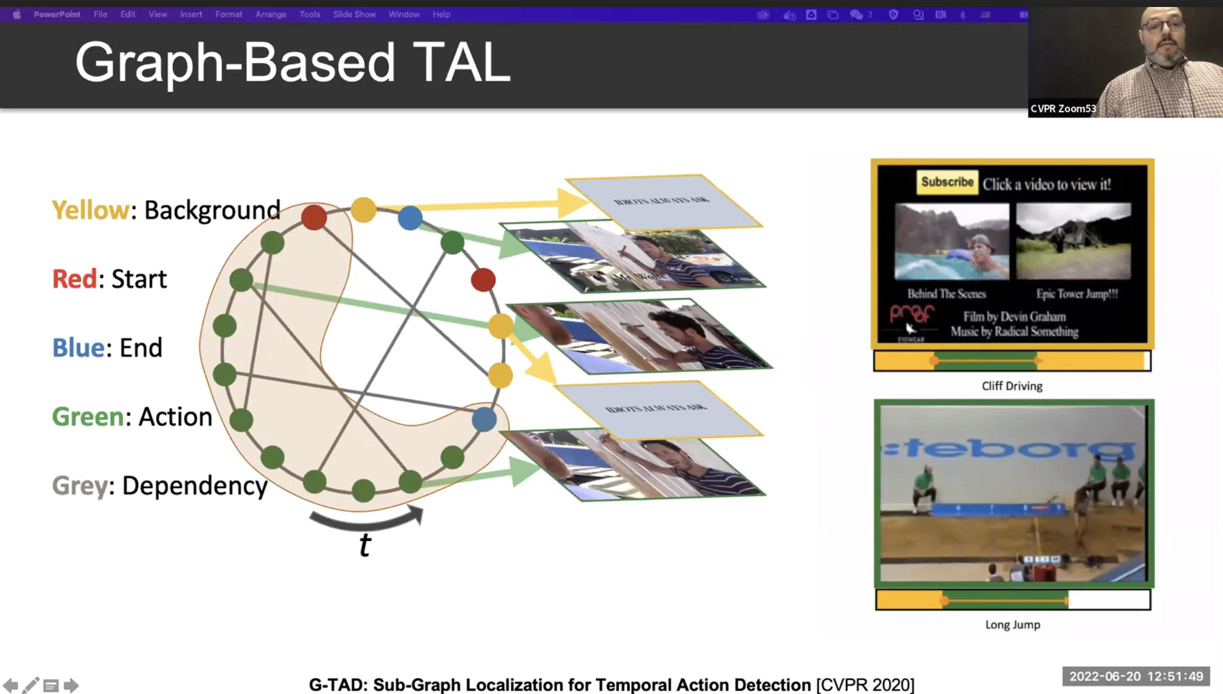 위의 내용을 정리한 그래프 기반의 TAL 모델을 자세히 보면, 시계 반대 방향으로 시간축을 형성하고 start node(Red), end node(Blue)를 잘 찾아내고 어떠한 행동인지를 분류하는 과제로 바뀝니다.