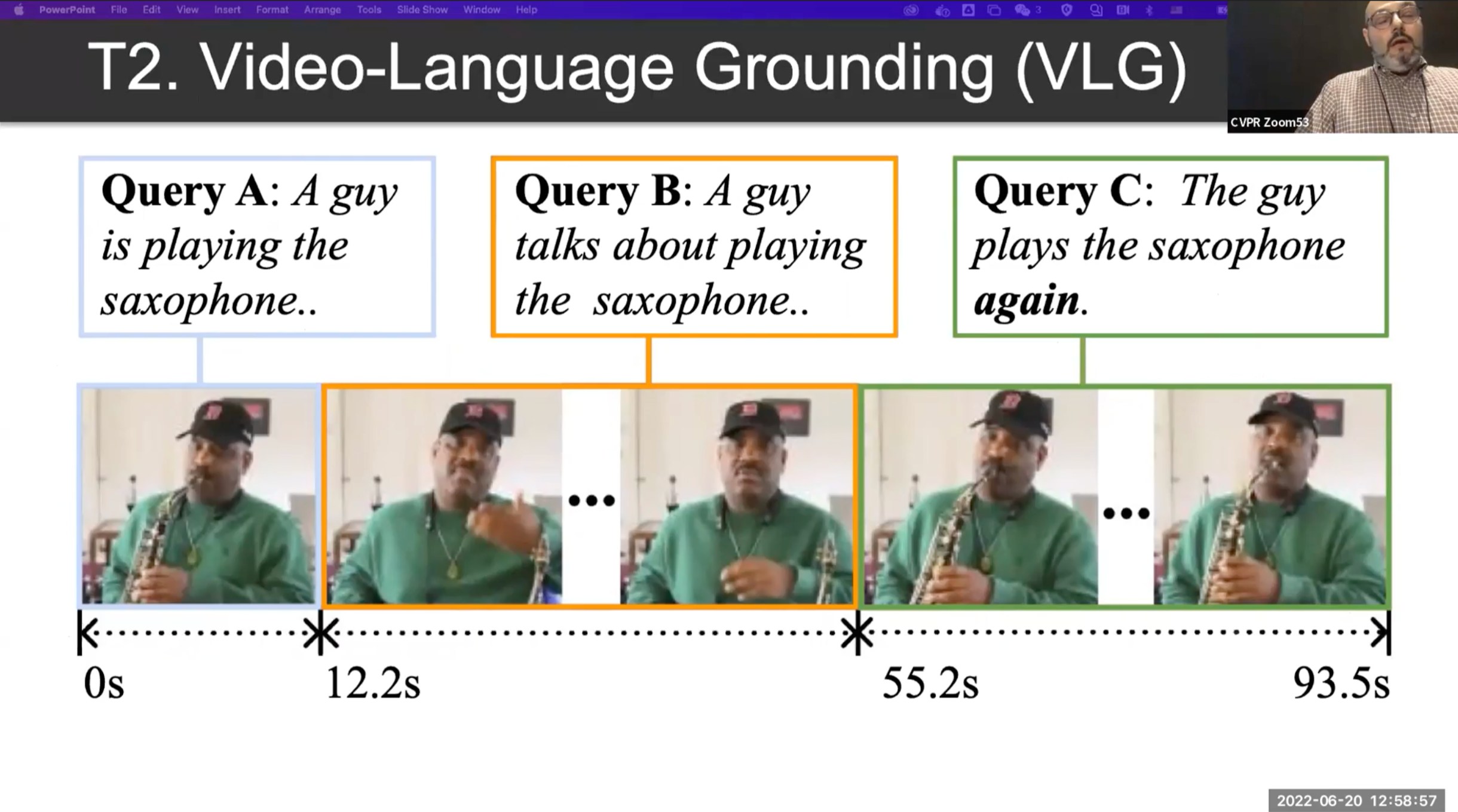 - T2 : Video Language Grounding (VLG)