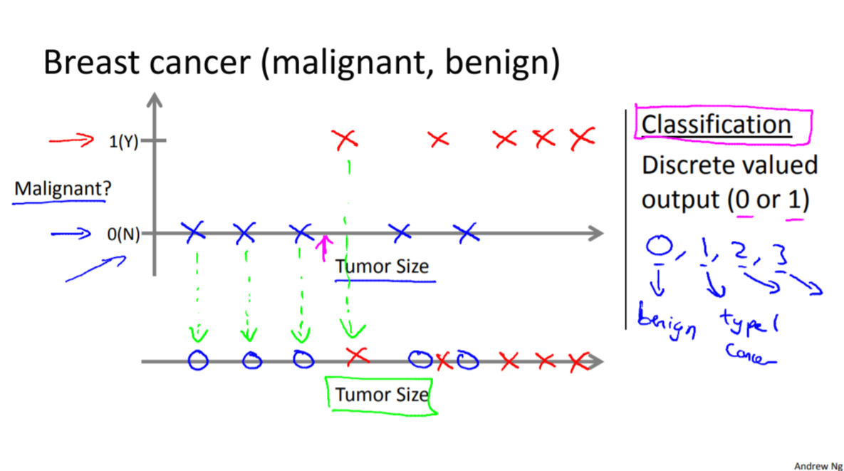 종양의 크기를 보고 악성인지 양성인지를 분류하는 곳에 머신러닝을 이용할 수 있다.