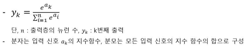 softmax activation funtion의 경우 출력값을 확률값으로 변환하는 역할을 한다.