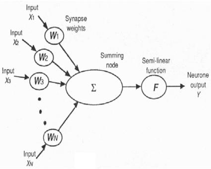 - 자극(input data)이 synapse(weight)를 통해서 cell body(function)로 들어오게 된다.