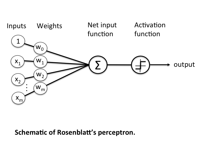 퍼셉트론은 입력된 특징들에 가중치들을 곱해서 모두 합한 후, 그 합에 부호함수를 적용해서 최종적인 분류명(class label)을 산출한다. 이 부호 함수는 활성화 함수(activation function)의 역할을 한다.