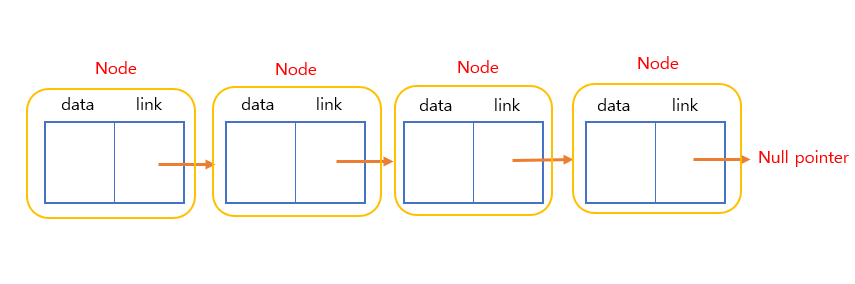 노드는 자료를 가진 data 부분과 다음 노드를 연결하는 link 부분으로 나뉘어져 있다.