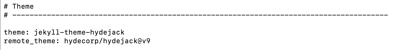 아래와 같이 theme, remote_theme 모두 해쉬태그 없이 만들어 준다.