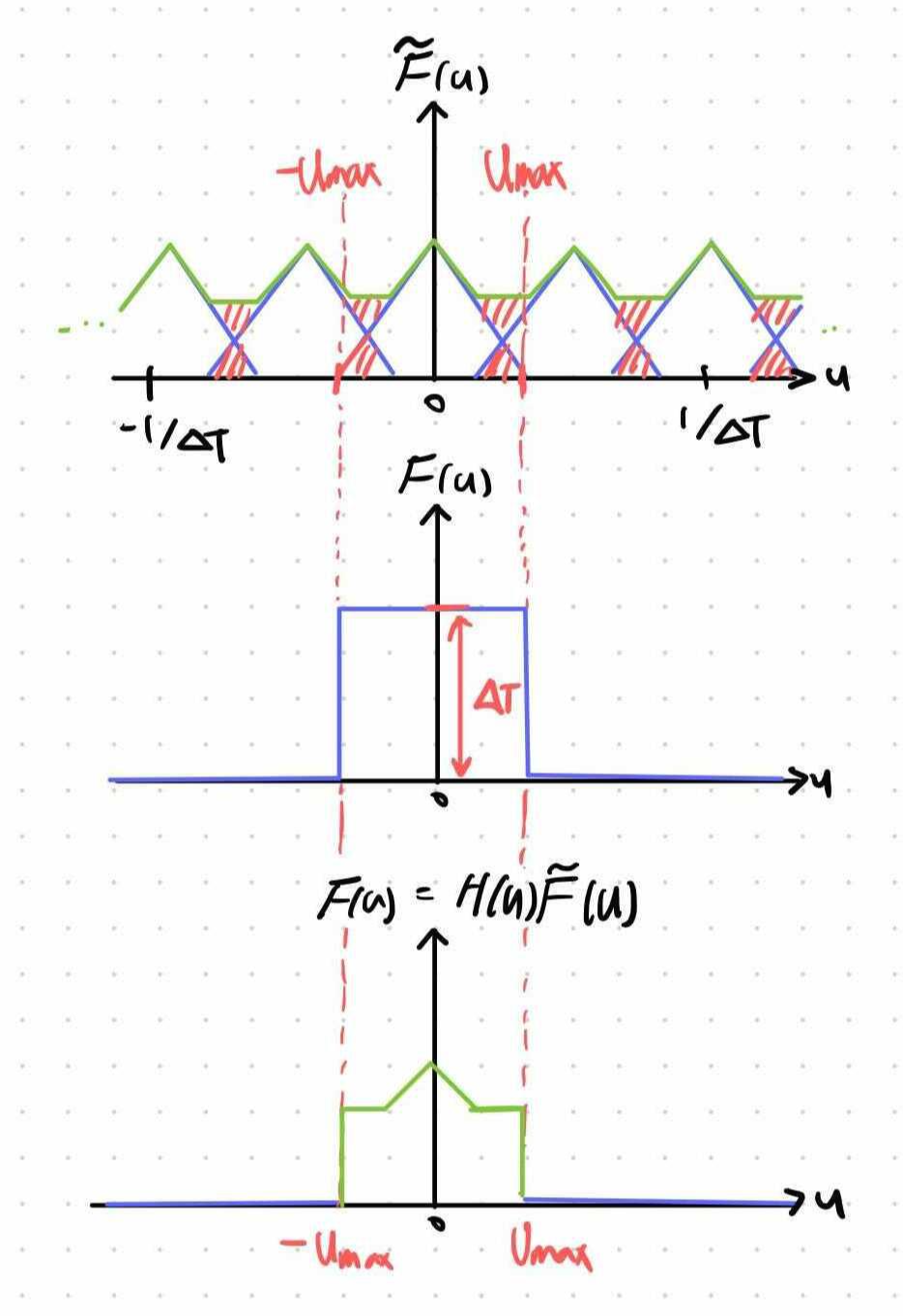 $ F(u)$가 band-limited 이더라도, $H(u)$로 합성곱하게되면 무한대로 뻗어가는 결과를 만들어 냅니다.