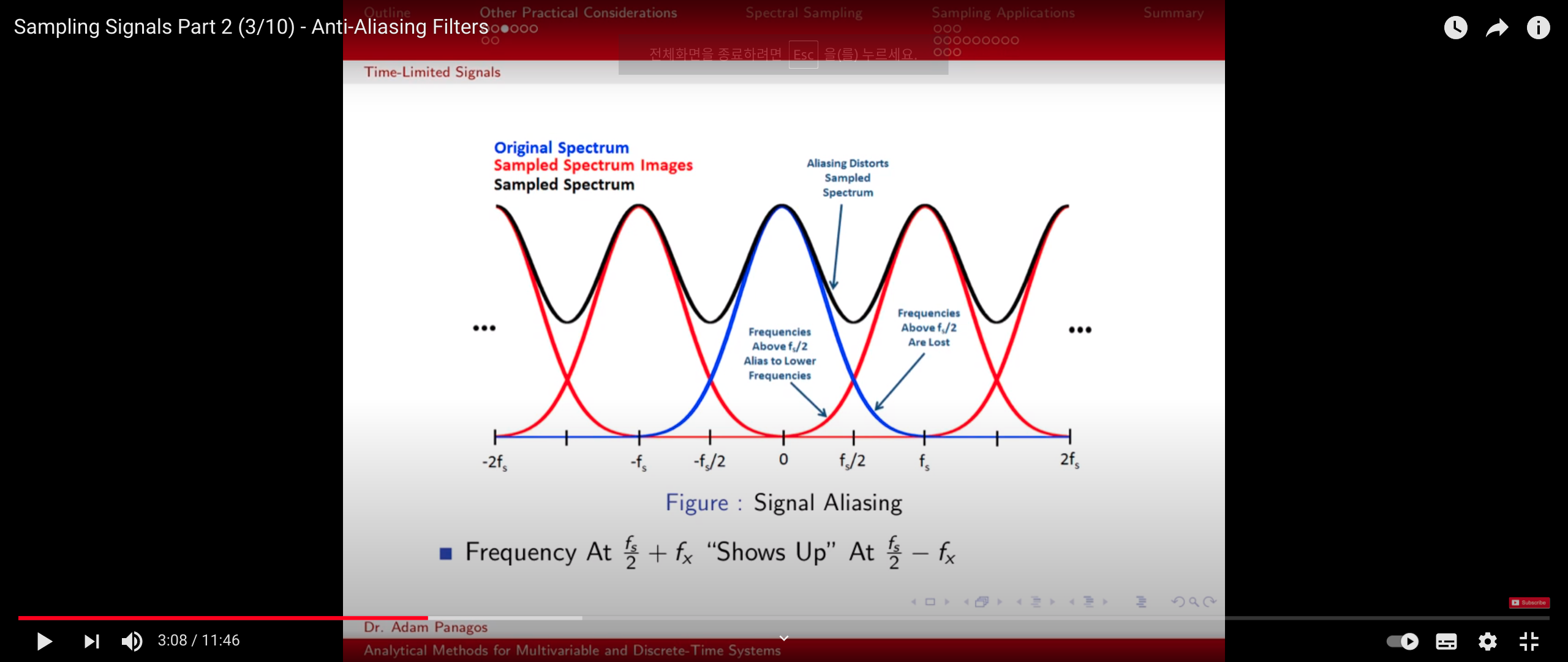아래 유투브 스크린샷 처럼 sampling 하게 되면 aliasing이 발생합니다.